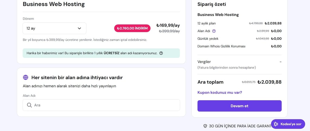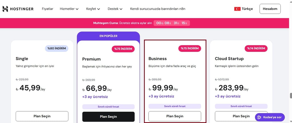 Türkçe Kontrol Paneli desteğine sahip Business Hosting Paketi içerisinde